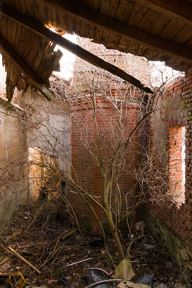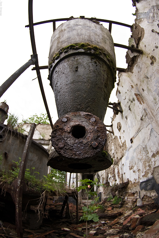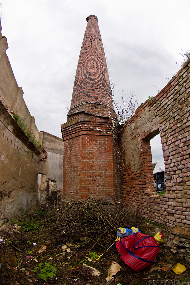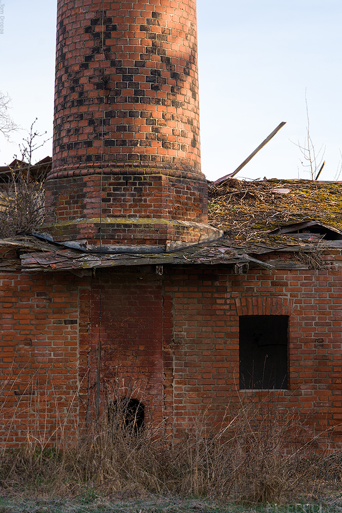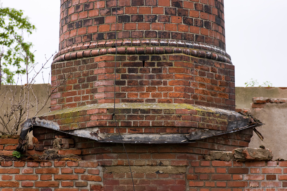 V nejzachovalejším stavu z celého lihovaru je tedy poměrně zdobný cihelný komín, který je dodnes v původním stavu. Bohužel jej neúměrně zatěžuje překynuté čapí hnízdo, takže hlavice komína má několik trhlin. Spodní část komína – oktagonální podstavec s příklopem a maticí – se s větší části ukrývala v budově, zdobnými tvarovkami navazující dřík z radiálek je zdoben mozaikou v dolní i horní části a je zakončen nenápadnou hlavicí. Komín vystavěla nejznámější česká komínářská firma Antonín Dvořák a Karel Fischer z Letek u Libčic. V podstatě identický komín můžeme najít v blízkých Dvorcích u Skal, kde byl taktéž v roce 1913 postaven družstevní lihovar.